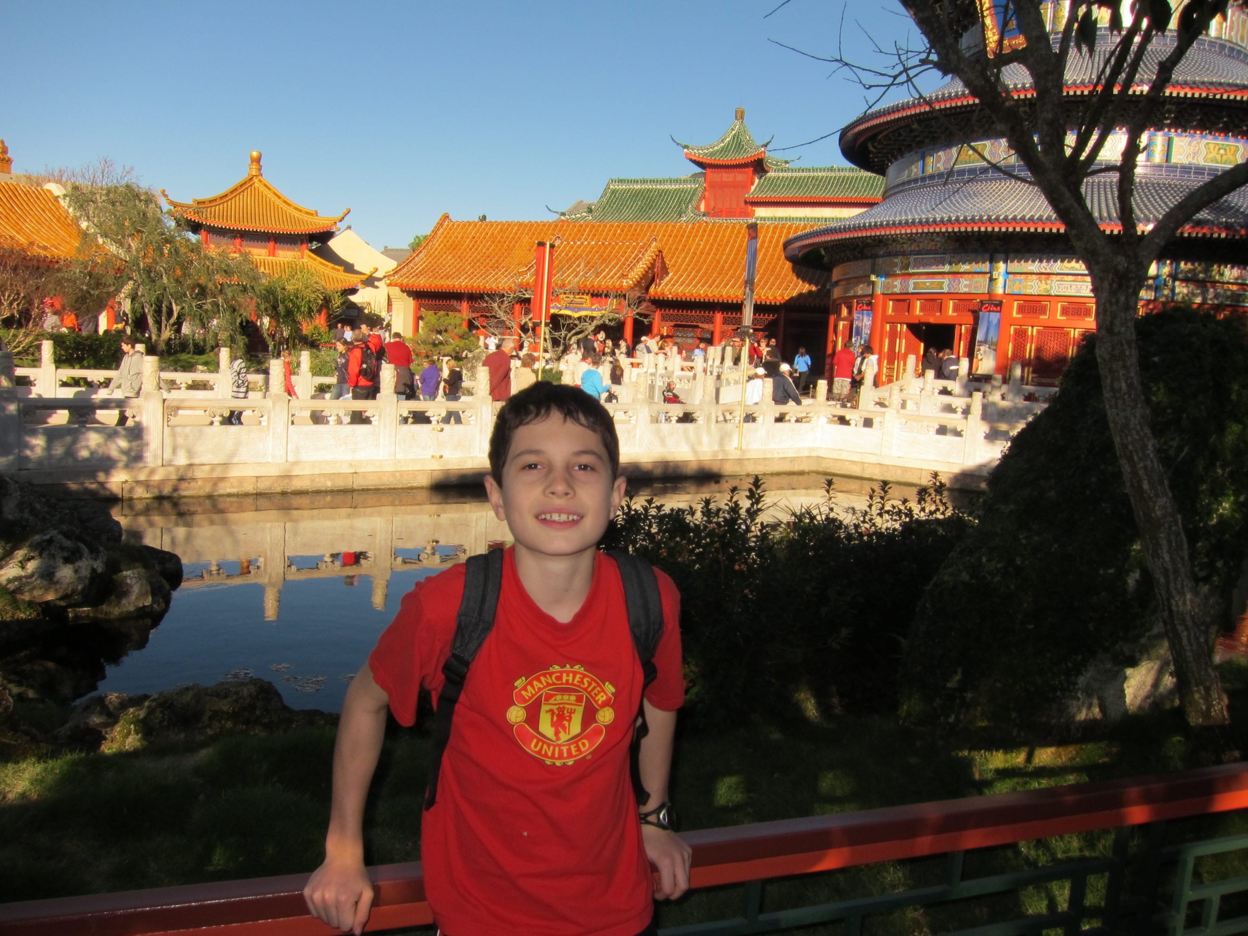 Epcot Theme Park, “England” pavilion. It’s 9:30pm and nobody’s around other than me and my 12-year old son.